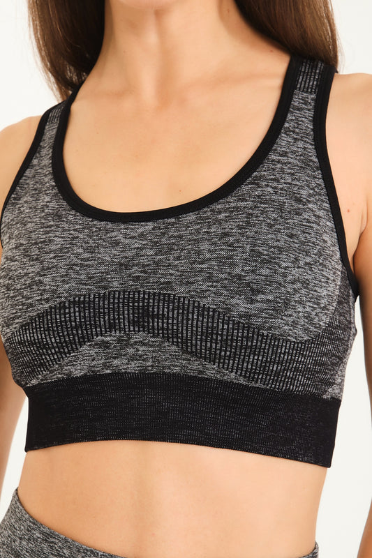 Arkası Çapraz Şeritli Kısa Kollu Sırt Dekolte Detaylı Siyah Büstiyer