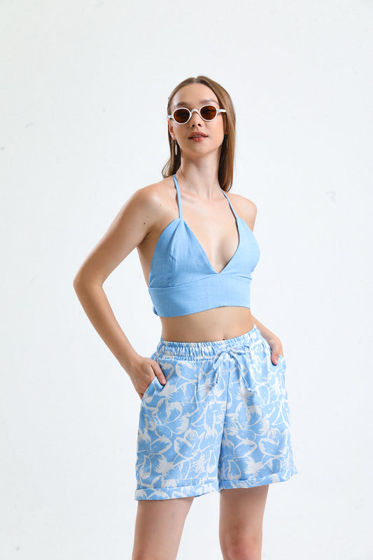 Efil Crop Büstiyer Şortlu Takım Mavi