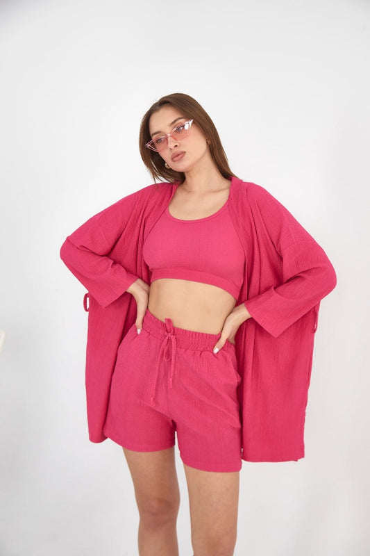 Joy Ceket Şort Büstiyer Takım Fuşya